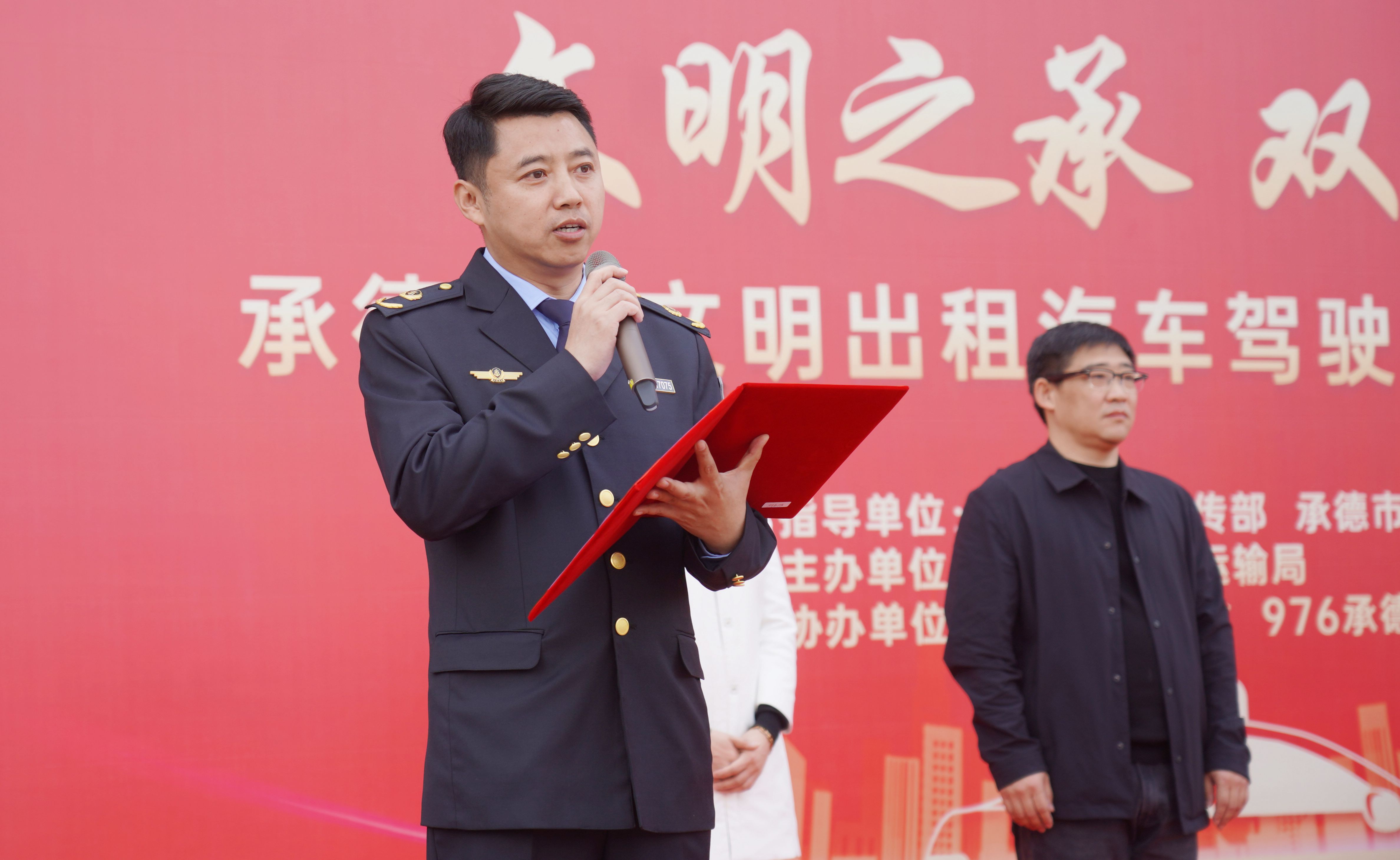 承德市文明辦副主任吳清玲,承德市交通運(yùn)輸局黨組成員、副局長吳洪波,承德市交通運(yùn)輸綜合行政執(zhí)法支隊(duì)黨總支書記、支隊(duì)長劉立杰,承德市交通運(yùn)輸綜合行政執(zhí)法支隊(duì)副支隊(duì)長劉東旭,976承德交通文藝廣播總監(jiān)胡慧梅,河北板城酒業(yè)品牌部經(jīng)理張文隆與出租車從業(yè)人員共同出席本次活動。