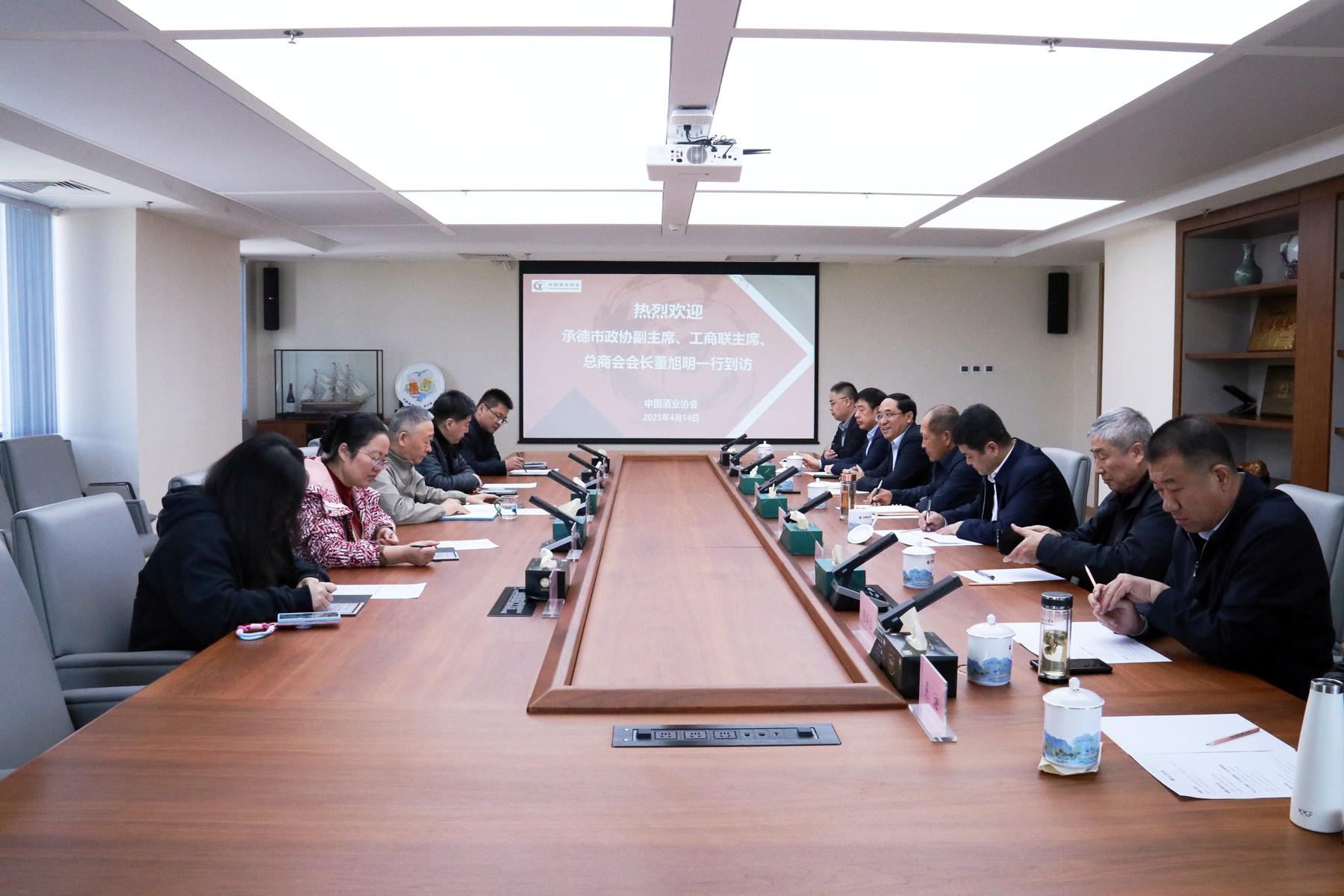 4月14日,承德市政協(xié)副主席、工商聯(lián)主席、總商會會長董旭明,承德市發(fā)改委副主任朱興允,承德市酒業(yè)協(xié)會理事長劉磊斌,秘書長陳建強,河北板城酒業(yè)黨委書記、總經理張春生,河北板城酒業(yè)總經辦主任吳迪及承德酒業(yè)同仁一同走進中國酒業(yè)協(xié)會,雙方就地產酒發(fā)展、產區(qū)建設、品質表達、文化價值等方面進行了座談交流。