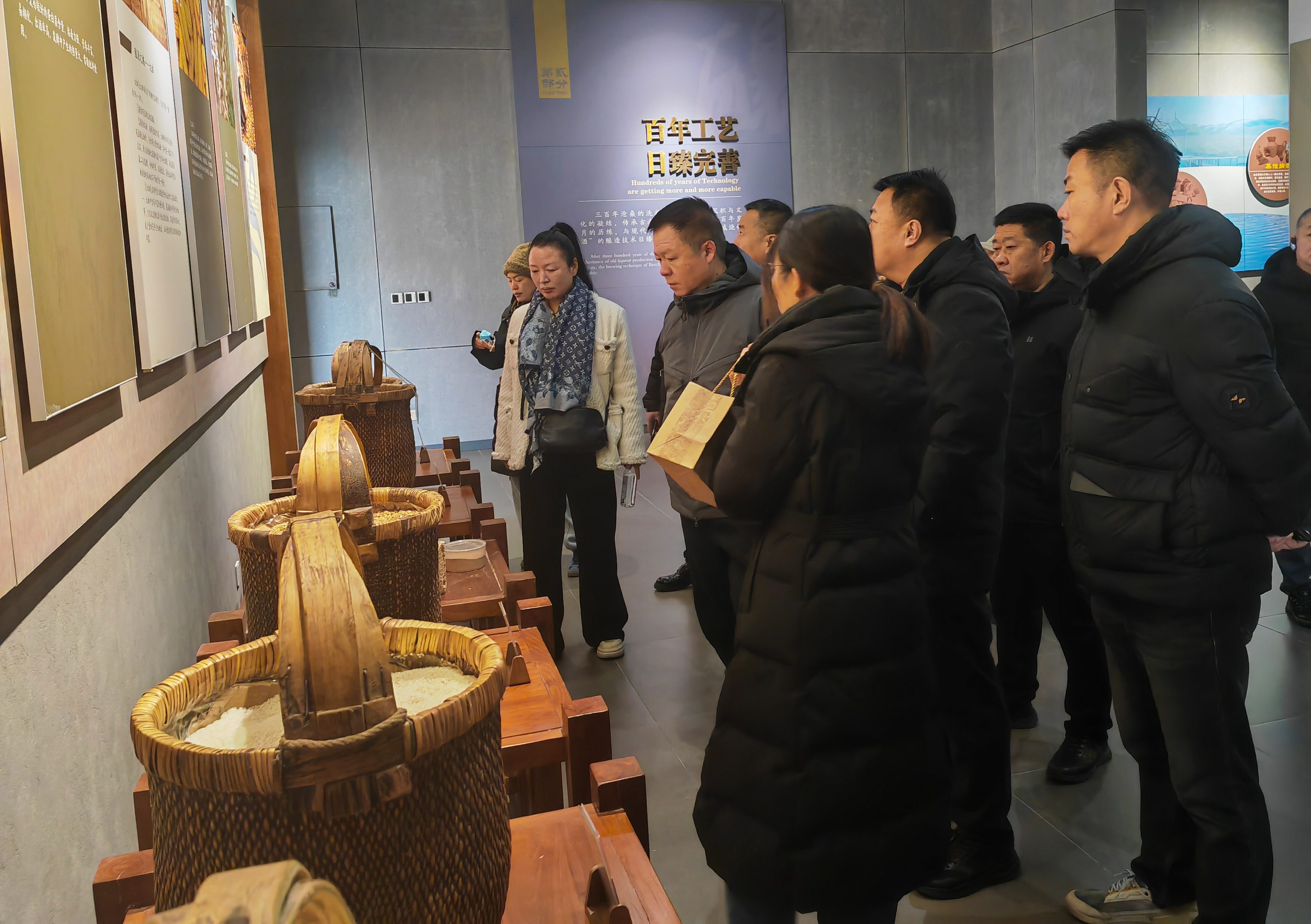 在板城酒業(yè)講解員的引領(lǐng)下,聶樹國會(huì)長一行首先參觀了板城燒鍋酒博物館。館內(nèi)陳列的原承德境內(nèi)出土的金代銅燒鍋、清代嘉慶皇帝御賜的《御制味余書室全集定本》等實(shí)物展品,揭示了承德境內(nèi)八百年的銅燒鍋釀酒史,更詳細(xì)闡述了板城燒鍋酒三百余年的國家非遺老五甑釀造歷史與文化傳承。